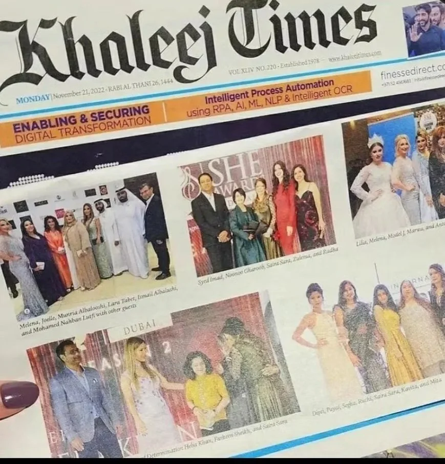 "SHE FASHION SHOW" held at Dubai was published in the newspaper, and a special guest was invited to this show the great actress Mandira Bedi.
